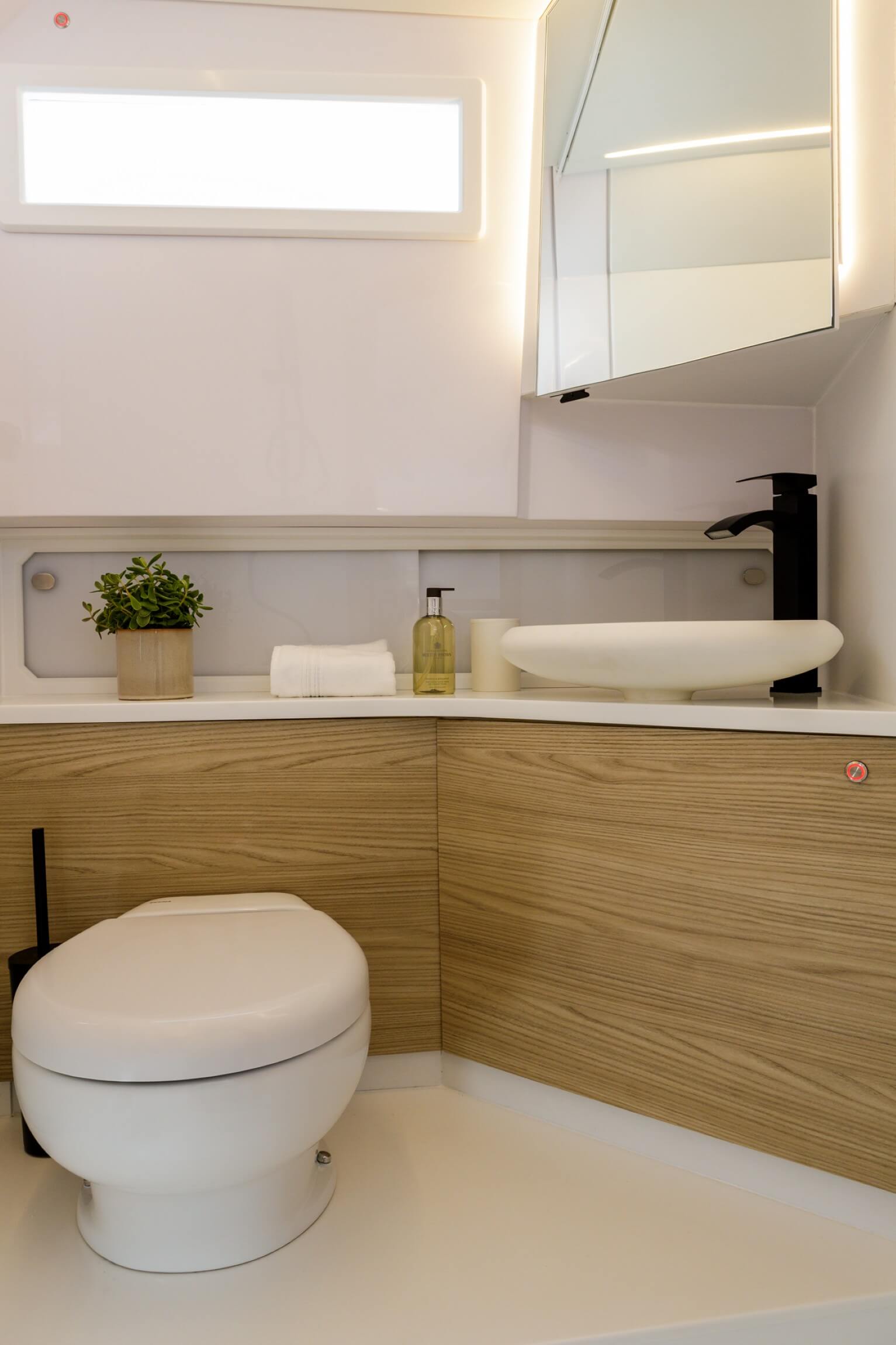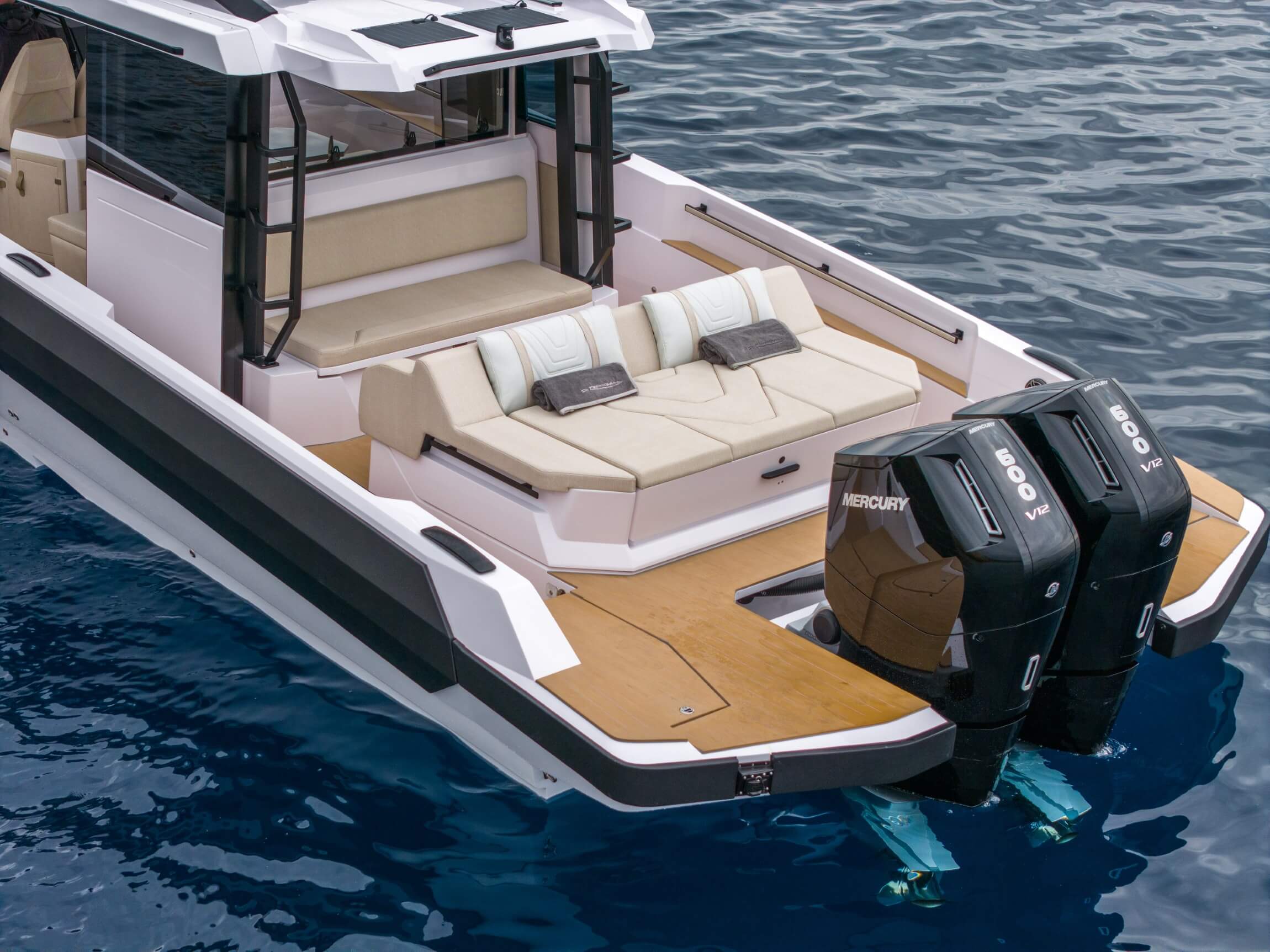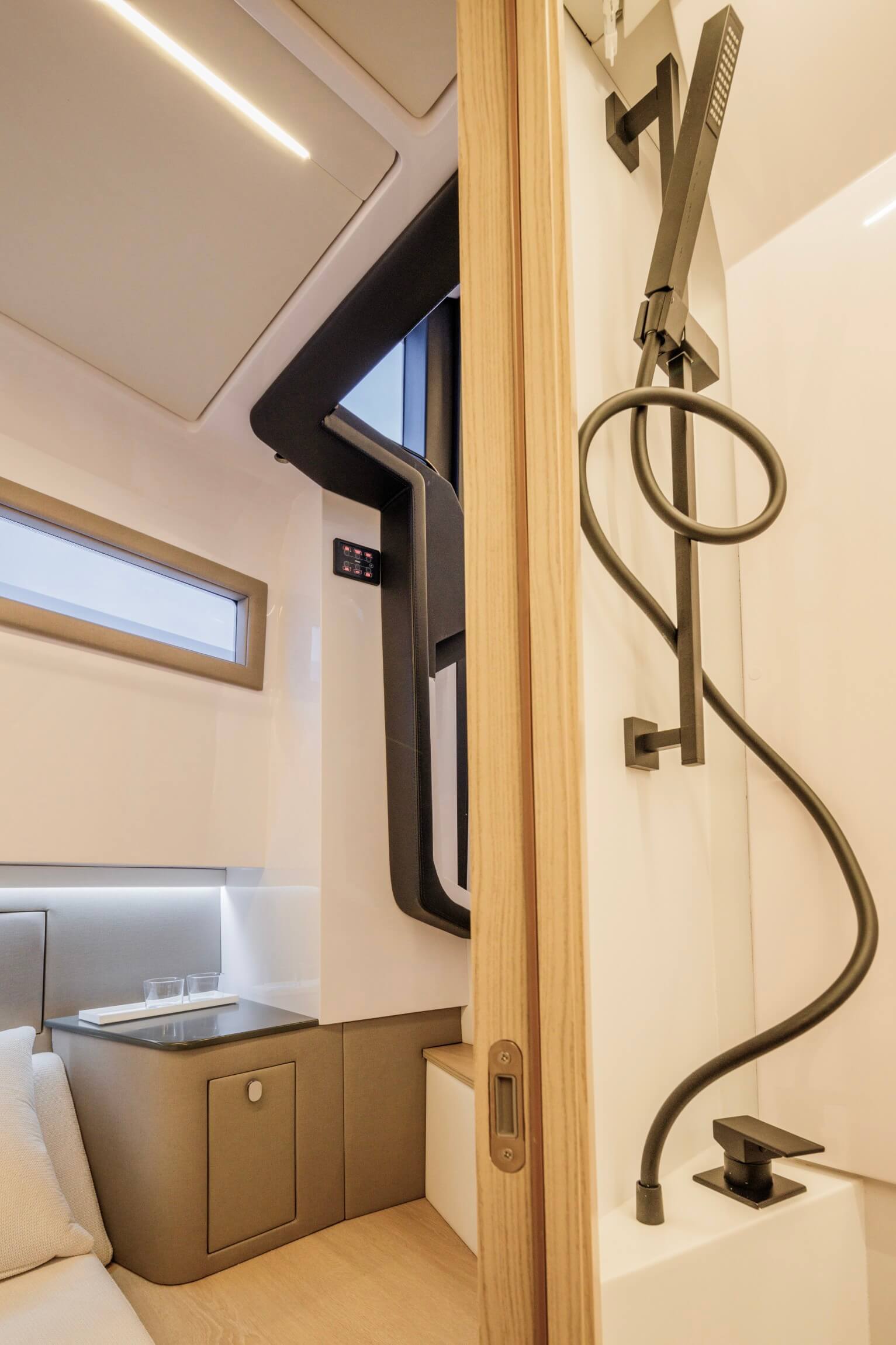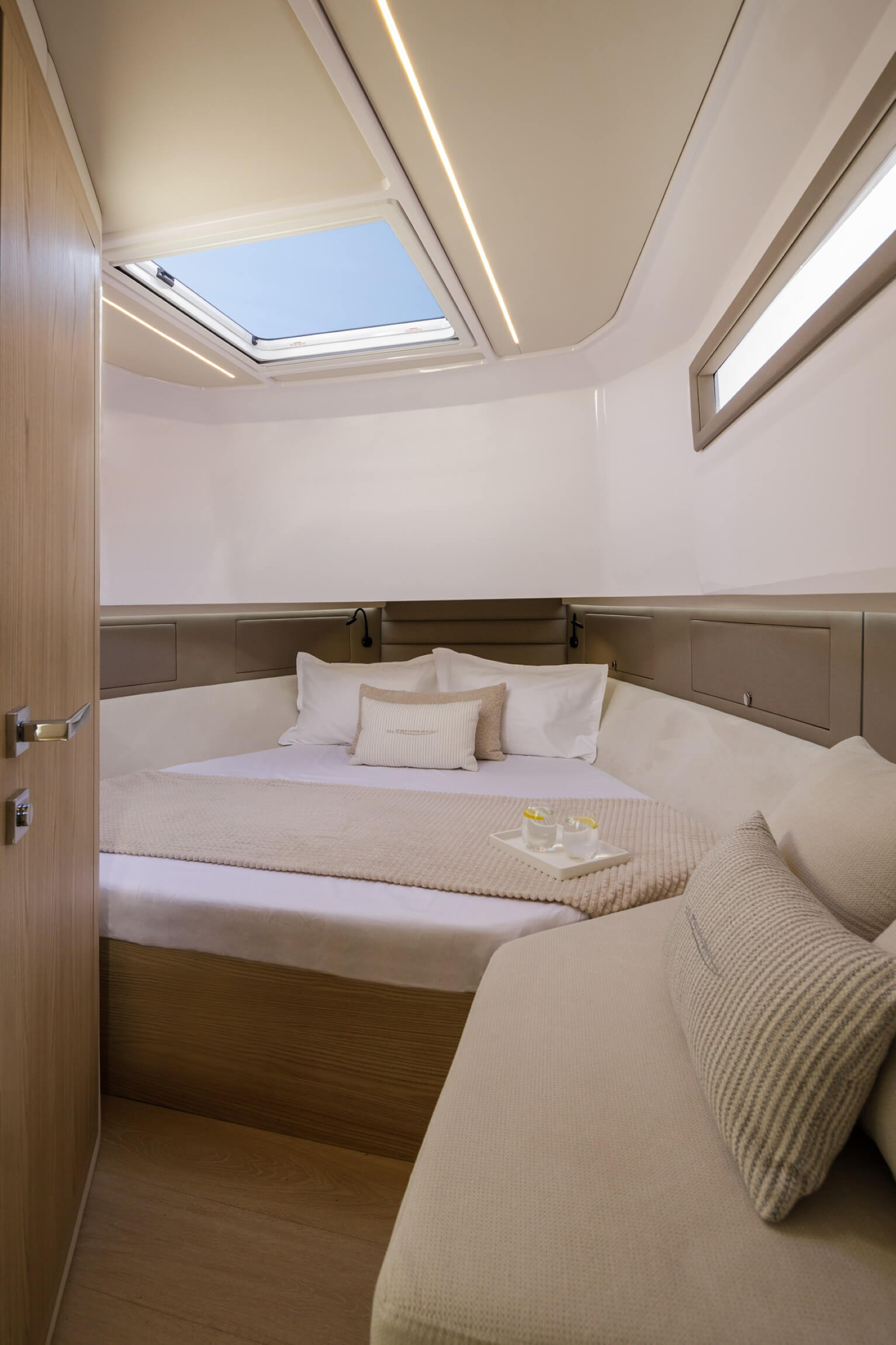 Thoughtfully designed, the cabins transform every journey into a luxurious retreat, setting new standards for comfort and privacy. Blending modern elegance with practical design, they offer a serene escape for those moments of relaxation after exploration. XPD 46 features a master and an aft cabin, comfortly accommodating up to 4 guests. Additionally, a cleverly integrated cabin beneath the bow sunbed provides space for one more person, a skipper or crew member.