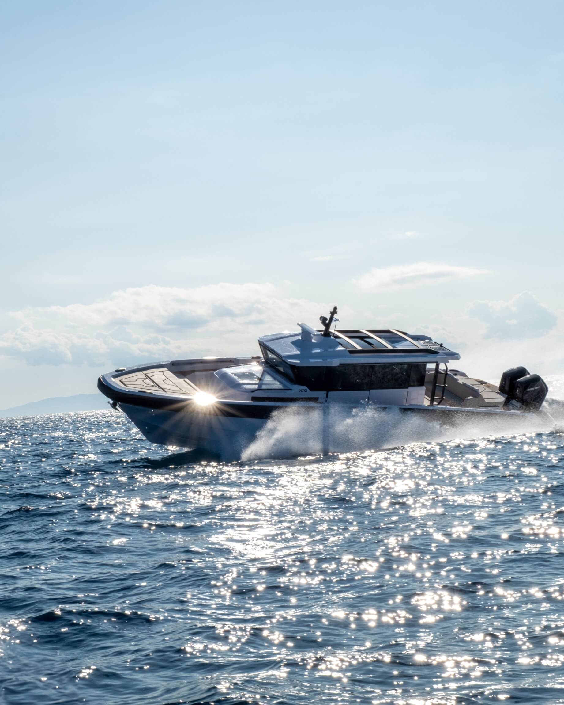 Redefining what an explorer-type boat can be, XPD 46 features an expansive, thoughtfully designed living space that places refined relaxation and pure enjoyment at the heart of the experience. Designed to evoke the effortless elegance of Mediterranean living, every area, from the open deck to the sheltered convertible lounge and the interiors, is crafted for social connection, laid-back comfort, and all-weather versatility.